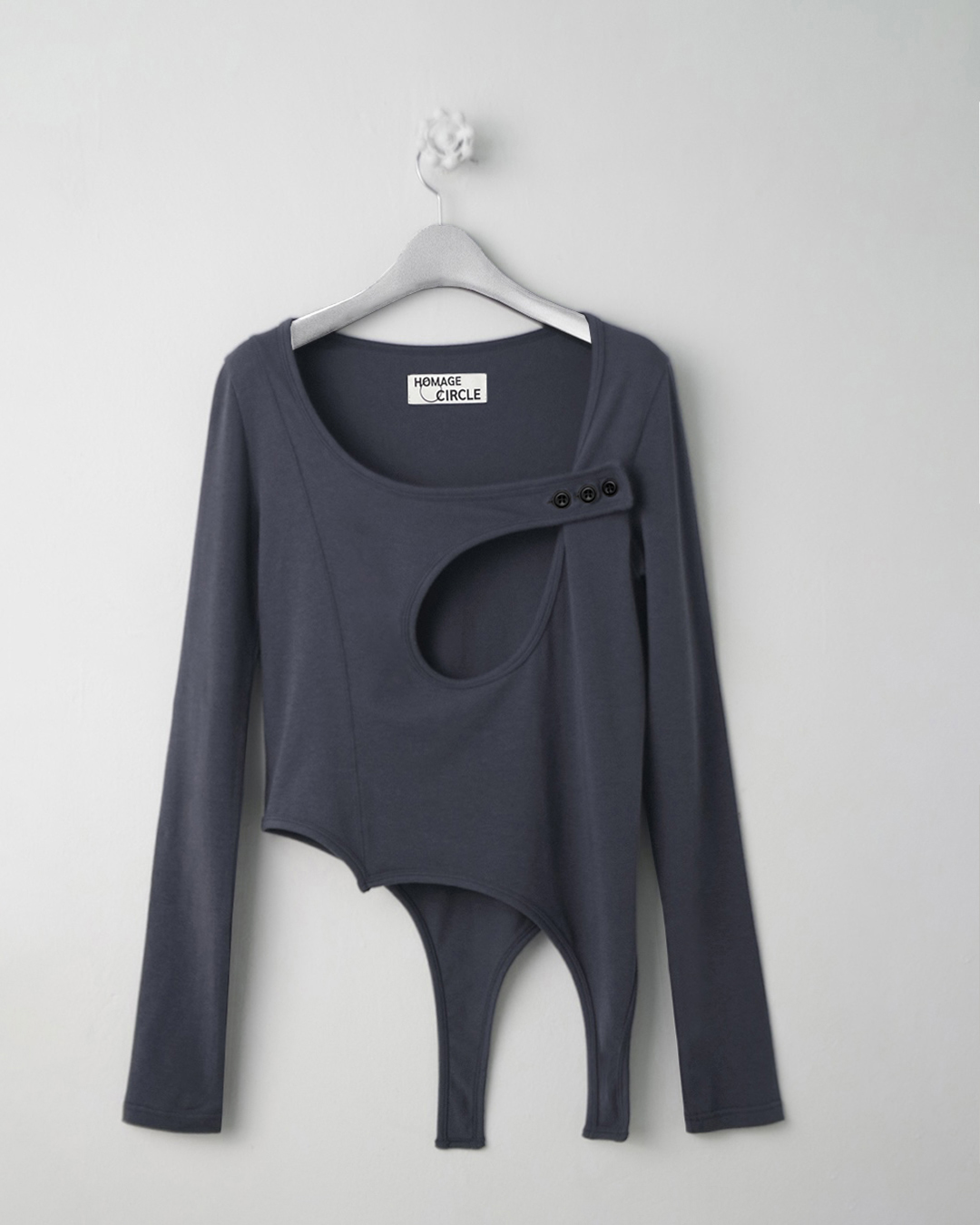 ・ 3 버튼 형태로 버튼을 조절해 원 오프 숄더 디자인으로도 착용 가능