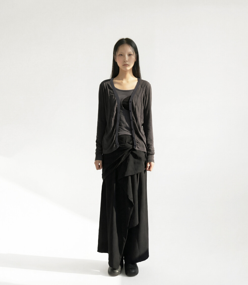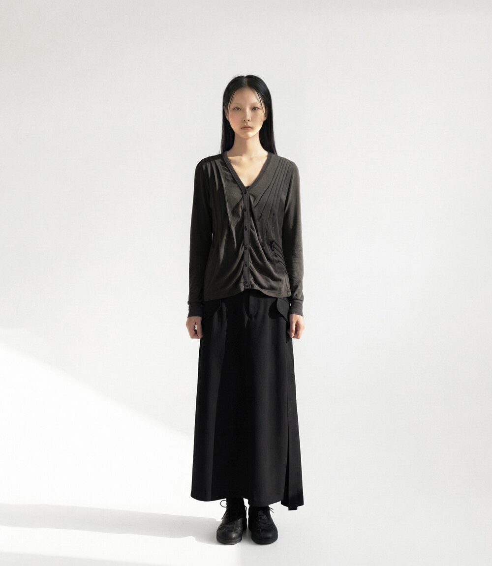Unbalanced Pleats Cardigan, Gray
